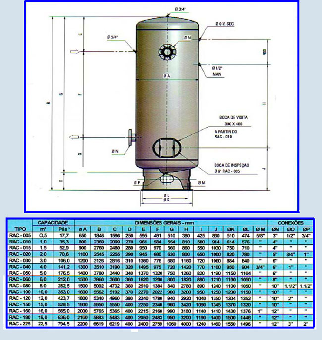 O vaso de pressão desempenha um papel muito importante no sistema de ar comprimido com múltiplos propósitos pelo valor de seu design e o Receptor de Ar selecionado corretamente também aumenta a vida útil do Compressor.